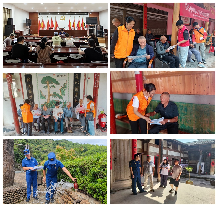 “您好!老乡,夏天在廊桥里乘凉时千万不要抽烟和乱扔烟头,以免发生火灾事故。”工作组还向文物场所管理人员、建筑周边居民等重点人群通俗讲解用火用电、祭祀朝拜等方面注意事项,叮嘱大家切勿粗心大意,注意防火安全,并发放消防宣传手册,引导群众主动参与保护文物建筑安全工作。