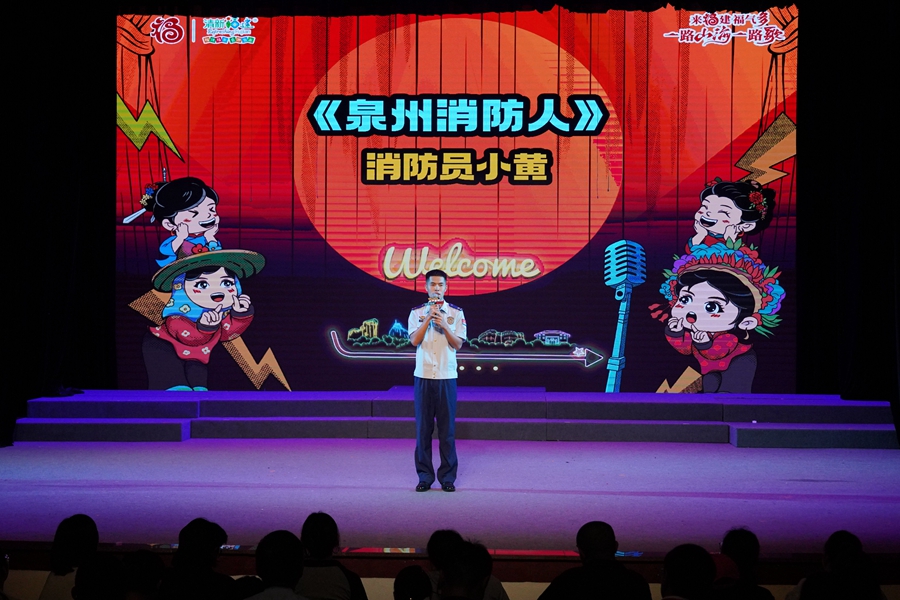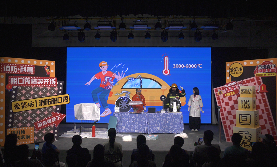 完善机制,凝聚多方合力。支队建立社群反馈机制,每月向粉丝征集意见,及时总结好经验好做法,不断优化剧本内容。同时,参与省文旅厅、市委组织部等单位的专场演出,提升品牌影响力和科普专业度。10月12日,支队消防员走上福建省文旅厅主办的脱口秀闽南文化专场(泉州站),为观众讲述古建筑消防安全。支队也借助当地媒体平台对脱口秀活动加以推广、宣传,吸引更多群众走进脱口秀现场学习消防安全知识。