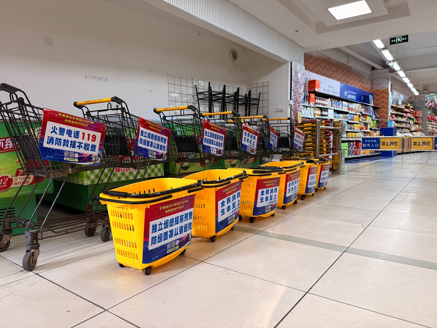 “睡前外出需谨记,熄火断电关煤气”“全民消防,生命至上”“独立感烟提前预警,防烟面罩从容避险”……平潭支队根据超市购物车型号,将不同样式的消防安全提示标牌悬挂在购物车上,提醒市民日常防火注意事项,方便广大群众在日常生活中购物,都能随时随地地学习到消防安全知识、了解消防安全知识,使消防安全扎根于广大群众的脑海中,有效增强广大群众的消防安全意识。同时,结合购物袋使用频率高、超市人流量广的特点,精心制作上千只消防宣传购物袋,袋上印有醒目的“关注消防,生命至上”“火灾逃生自救十条方法”等宣传标语,既接地气地让群众学到平安知识,又起到了安全提示作用。