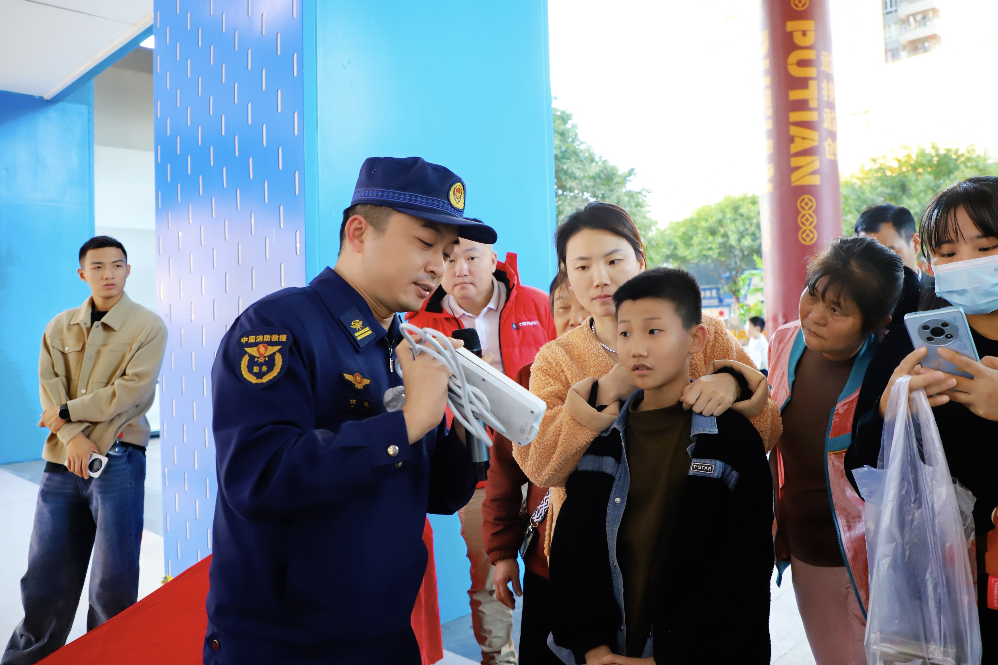 面对群众提出“电器起火如何扑救”“灭火器怎样使用”等问题,消防宣讲员向市民强调电器火灾应先断电、后灭火,不可直接泼水;同时现场示范干粉灭火器的正确操作步骤。活动现场还发放消防知识手册及安全文创品数百份,将实用的防火常识融入日常生活。