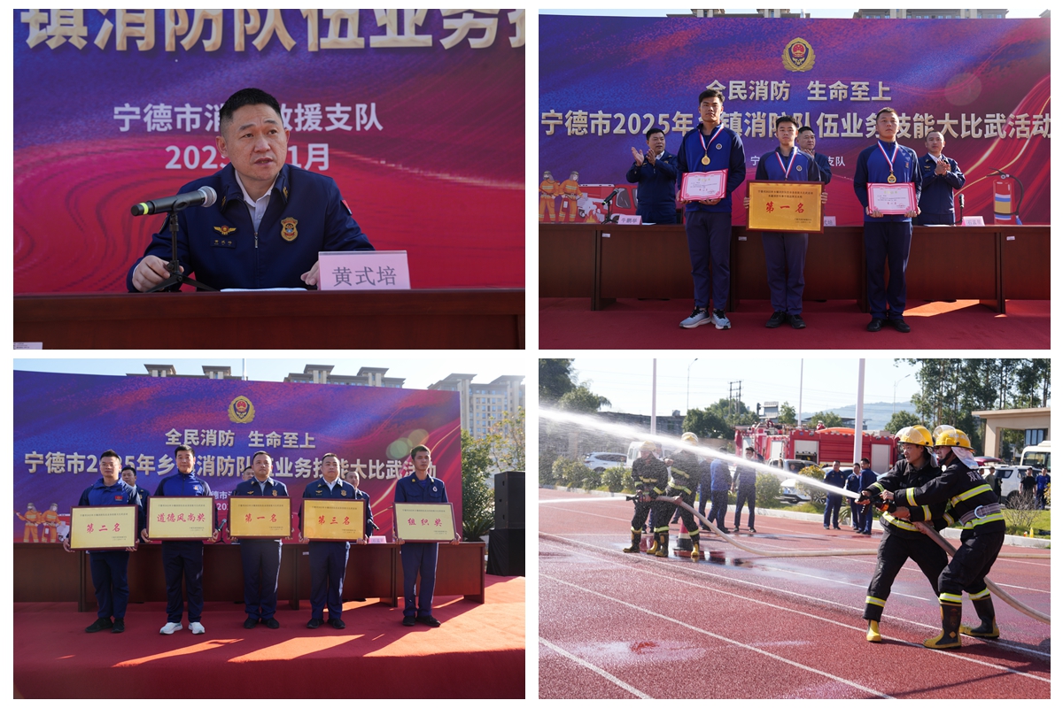 竞赛期间,各参赛队员精神饱满、斗志昂扬,在比武场上争分夺秒,团结协作,展示出基层消防力量良好的精神风貌和过硬的业务素质。裁判组公平、公正,现场井然有序,确保了比武安全规范进行。经过比拼,最终福鼎、屏南、柘荣代表队获得乡镇专职消防队竞赛前三名。