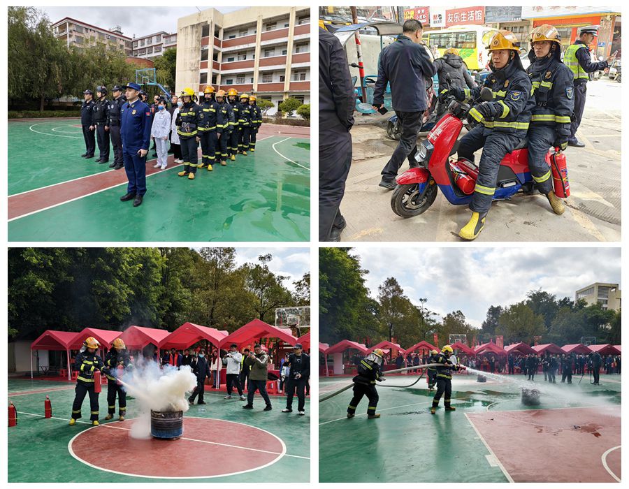演练模拟某民俗活动场所因用火不慎引发初期火灾。已在主会场执行前置安保任务的荔华大道消防站执勤力量,第一时间由“执勤状态”无缝切换为“应急处置状态”。针对模拟场景中道路狭窄、消防车辆无法直接抵达的情况,现场指挥员立即派出2名战斗员骑消防电动自行车,携带灭火器快速抵近火场,实施初期控火。主力攻坚组紧随其后,铺设水带干线至现场,出枪彻底扑灭火势。同时,另一组人员协同现场工作人员,对周边参与群众进行有序引导疏散。整个处置过程连贯有序,展现了多装备协同、快速处置与主战力量紧密衔接的实战能力。