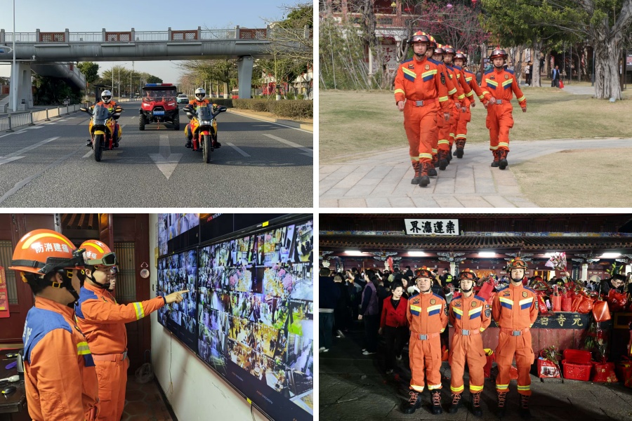 据统计,春节期间,全市累计出动消防救援力量1万余人次,在重点区域和关键部位设置巡查巡防前置备勤点160余处。西街、中山路、蟳埔村、洛阳桥、石狮黄金海岸……每一个游客密集的网红打卡点,都能看到“火焰蓝”的身影。他们或定点执勤,或流动巡逻,或开展宣传,用脚步丈量平安,用专业守护团圆。