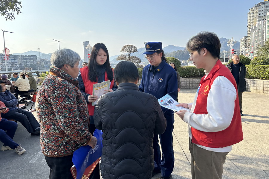 “春节大扫除别忘了清阳台、清楼道,出门前一定要关电源、关火源、关气源,这既是‘三清三关’,也是平安过节的关键!”在顺昌双溪公园,消防宣传人员与大学生志愿者组成的“平安宣讲队”格外醒目。志愿者们身着红马甲,向过往群众递上印有消防常识的宣传手册与新春福字,送上年味满满的平安祝福。结合春节居家用火用电用气高频场景,志愿者们用接地气的语言拆解家庭火灾隐患自查要点,演示灭火器操作规范,详解初期火灾扑救与火场逃生自救技巧,让红底金字的福字成为承载平安期许的“安全符”。活动现场通过主题海报展示、咨询展台答疑等形式,累计发放宣传资料200余份,惠及群众千余人次。